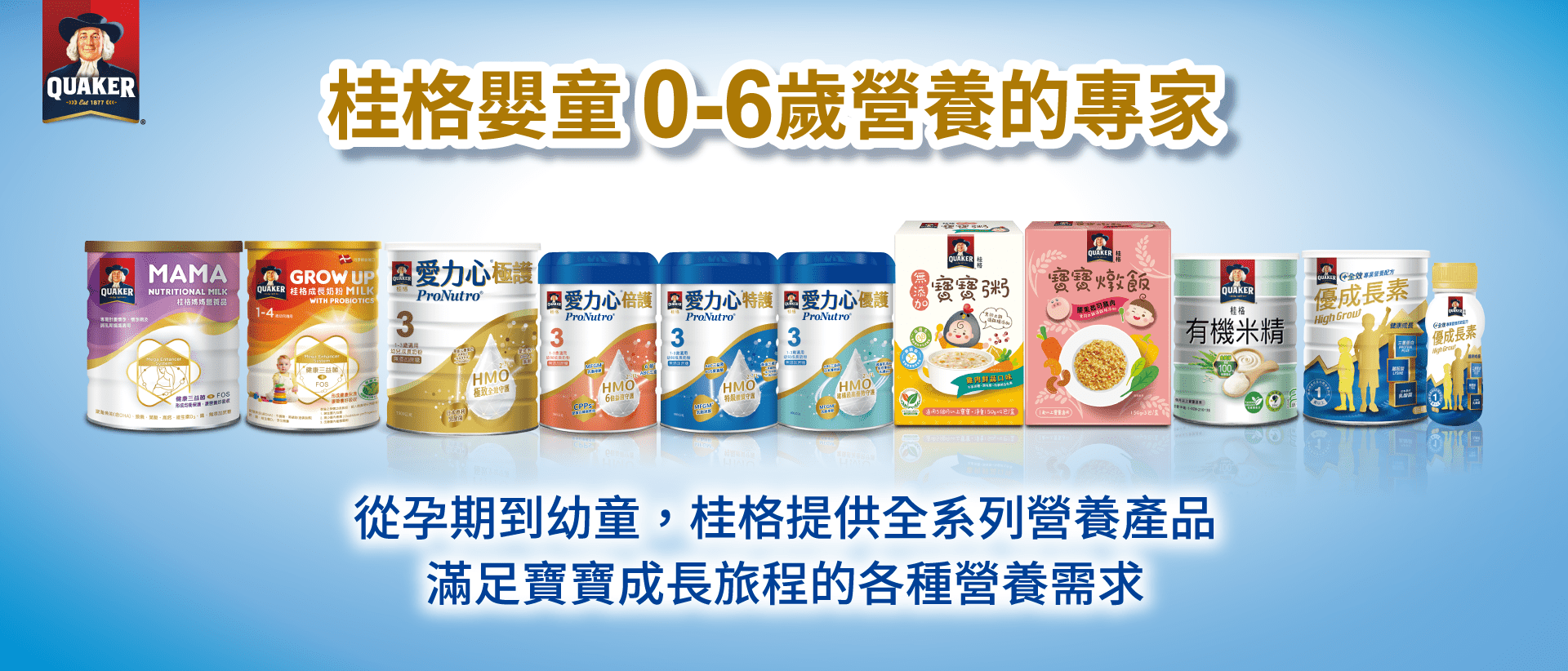 140年來專業營養的桂格,在嬰童營養產品上,持續創新產品,為不同階段的寶寶,提供面面俱到的營養與保護!