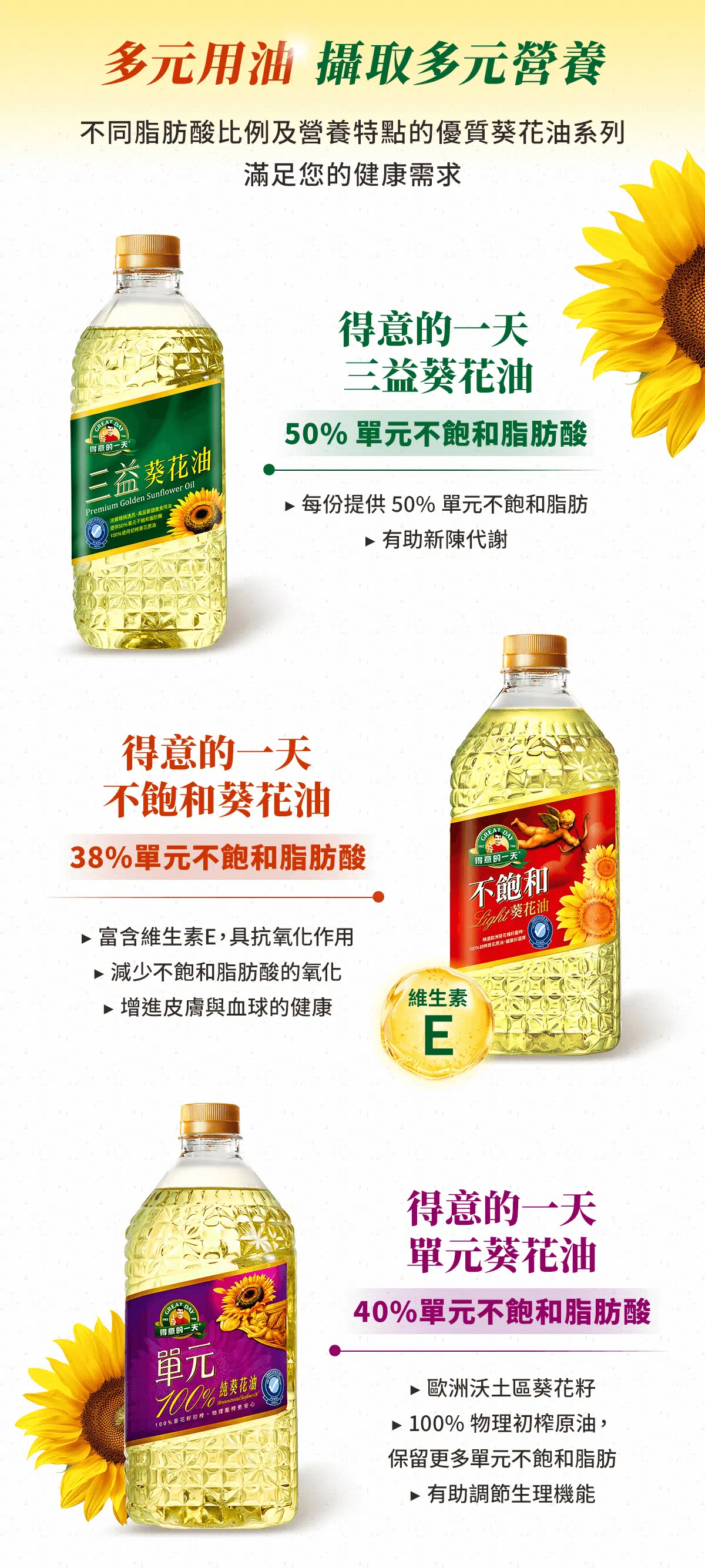 *精選歐洲葵花種籽,採物理壓榨技術,100%使用初榨葵花原油