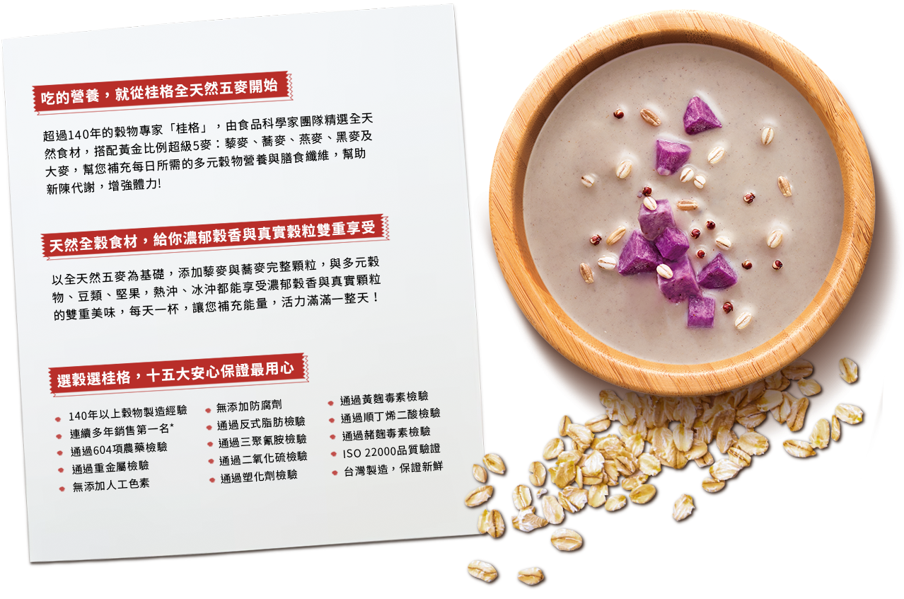 #100%無添加 #全穀營養 #膳食纖維 #幫助新陳代謝 #增強體力 #全素 #乳糖不耐 #穀物專家 #銷售第一 #冰沖 #無添加糖 #潔淨標章 #100%全天然