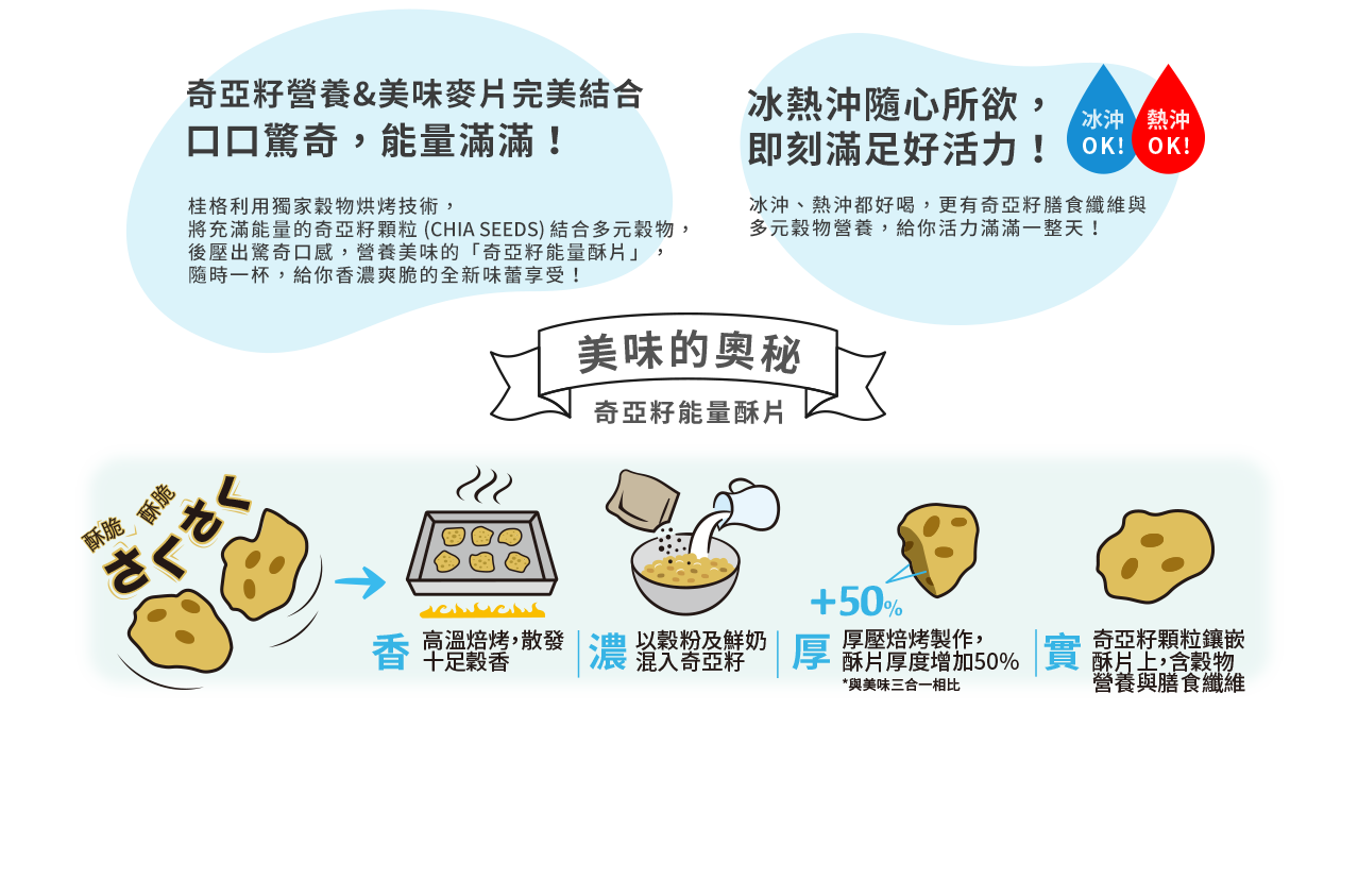 #奇亞籽 #沖泡麥片 #超級食物 #卡滋酥脆 #營養美味 #膳食纖維 #穀物營養 #卡滋充電 #三合一 #特濃鮮奶 #峮峮 #銷售第一