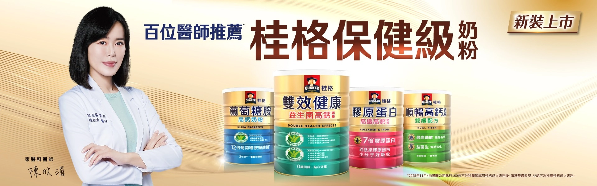 機能奶粉系列低/脫脂奶粉再添加機能成分,美味又少負擔,滿足各式保健需求。優質的營養設計,在《早安健康》健康品牌風雲賞屢創佳績! 桂格全能高效高鈣奶粉 桂格乳清蛋白葡萄糖胺高鈣奶粉 桂格好眠亮顏高鈣奶粉 桂格雙效健康益生菌高鈣奶粉 桂格葡萄糖胺高鈣奶粉 桂格順暢高鈣奶粉 桂格膠原蛋白高鐵高鈣奶粉 桂格高鈣奶粉Inulin配方 桂格維他命高鈣奶粉 桂格高鈣奶粉高鐵配方 全脂奶粉系列 100%紐西蘭生乳 乳源純淨濃厚奶香 柔滑口感即沖即溶 醇濃美味無色素、無香料、無防腐劑 桂格醇濃全脂奶粉 桂格全家人高鈣營養奶粉 奶粉如何製作新鮮現擠生乳噴乾,保持完整新鮮度、確保營養不流失,機能奶粉由專業營養師調配,守護家人健康!詳見專業知識如何選擇好的奶粉?奶粉由鮮奶製造而成,要選擇好的奶粉當然首重就是乳源!詳見專業知識 分享到