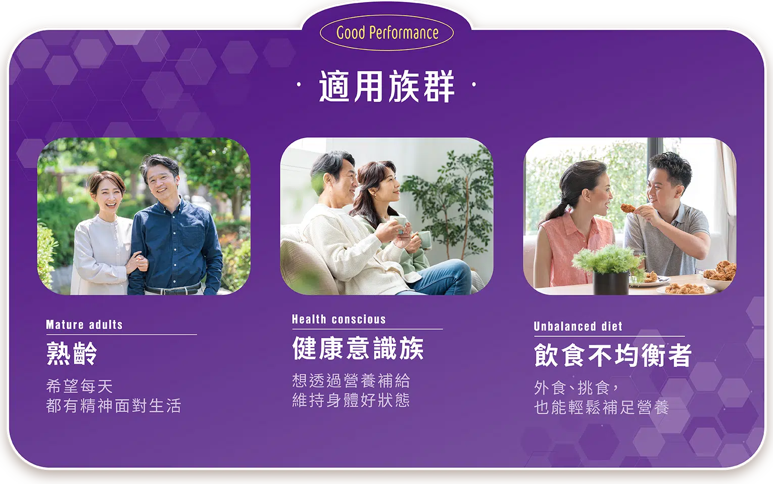 專為熟齡族群打造全方位營養食補,幫助維持日常活力及保養。