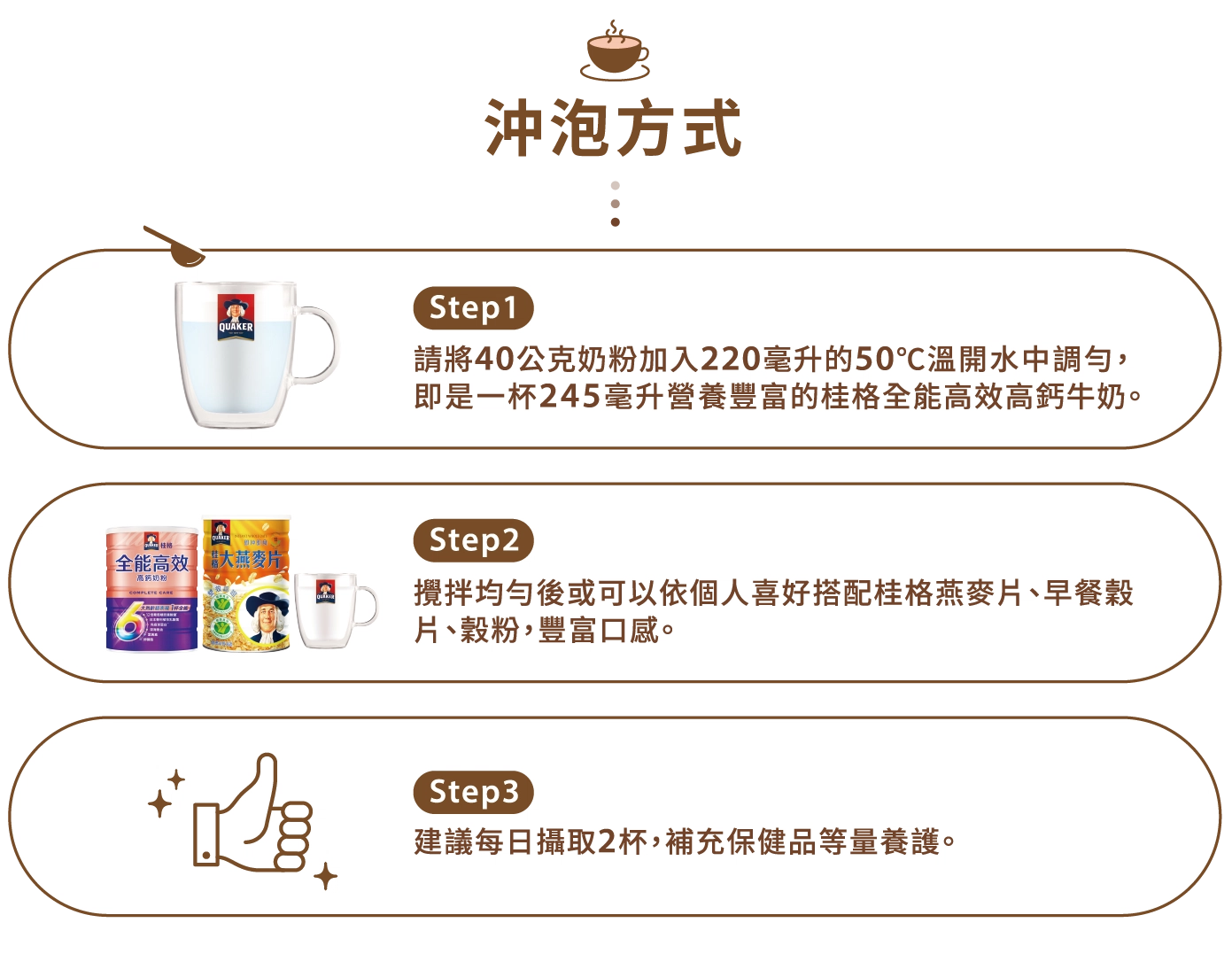 A2:1杯日常保養,2杯增強保健,每日建議攝取量為2杯,補充您生活所需的營養,
