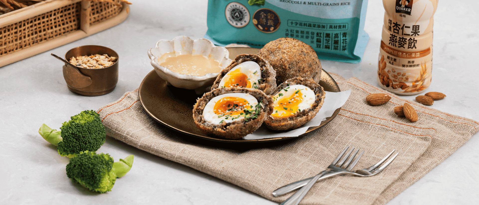 🥚 高纖食譜|纖蔬花米蘇格蘭蛋&燕麥飲味噌胡麻醬